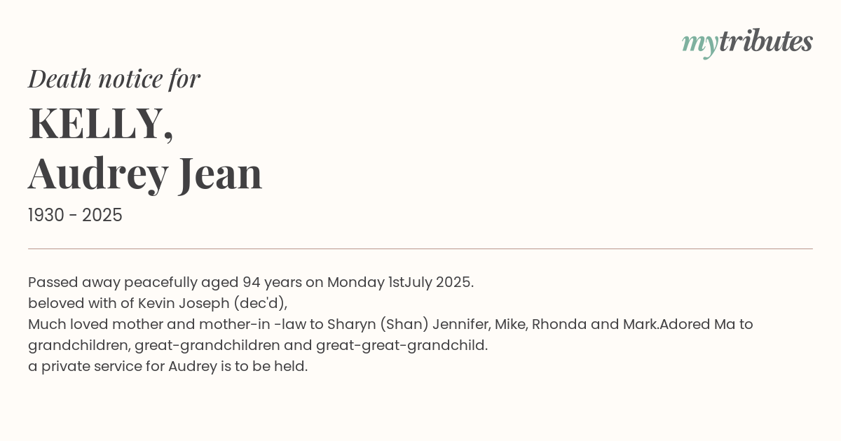 16°CPassed away peacefully aged 94 years on Monday 1stJuly 2025.