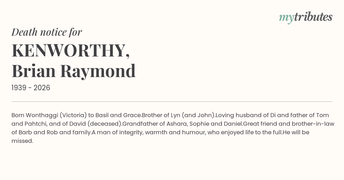 Loving husband of Di and father of Tom and Pahtchi, and of David (deceased).