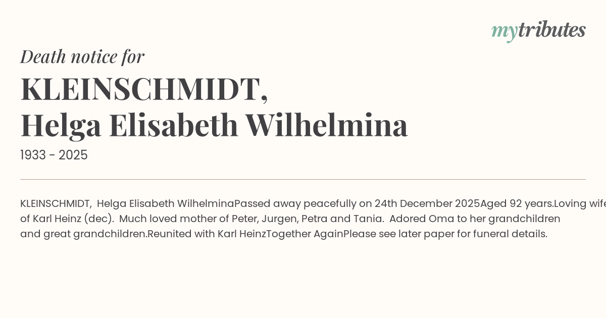 Passed away peacefully on 24th December 2025