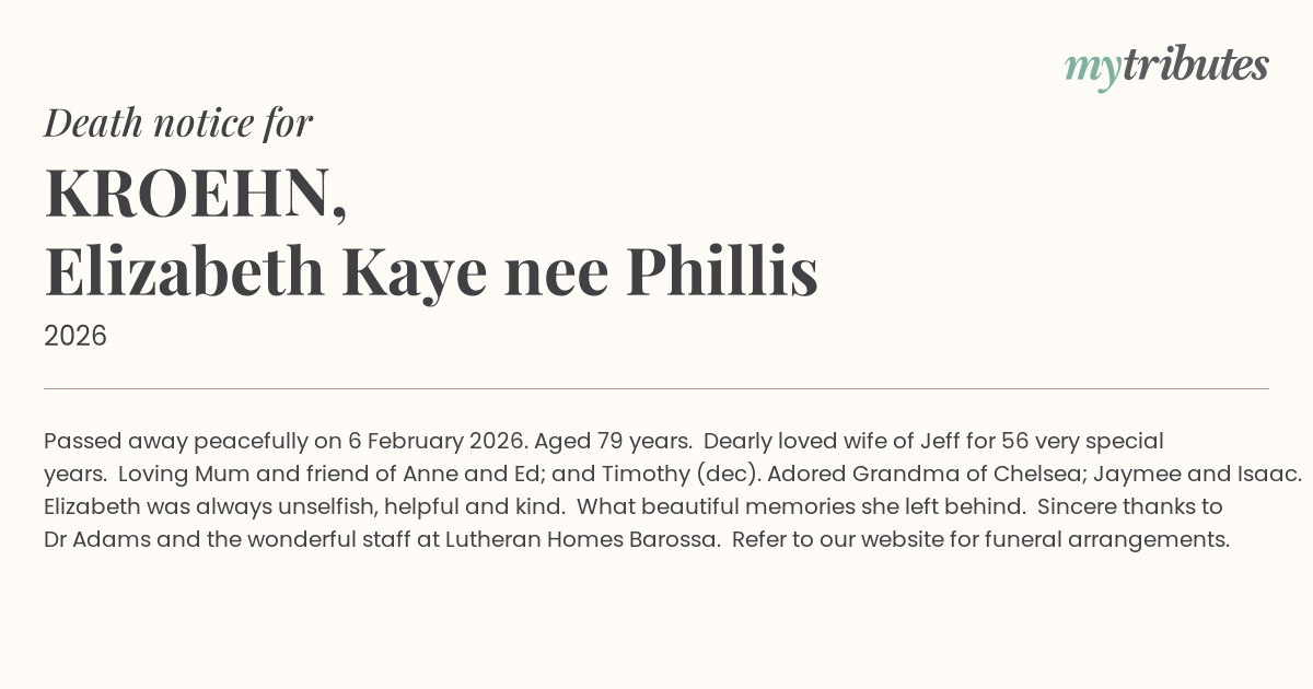 16°CPassed away peacefully on 6 February 2026.