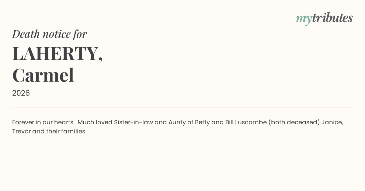 Much loved Sister-in-law and Aunty of Betty and Bill Luscombe (both deceased) Janice, Trevor and their families