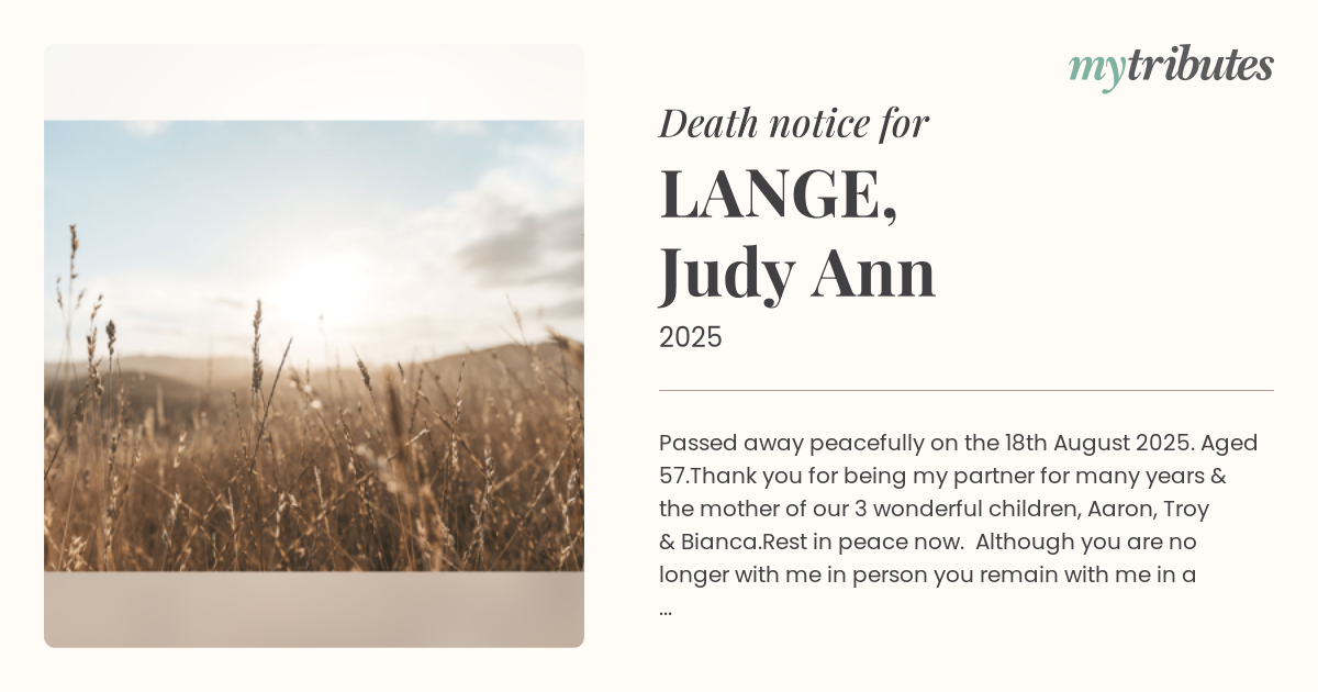 16°CPassed away peacefully on the 18th August 2025. Aged 57.