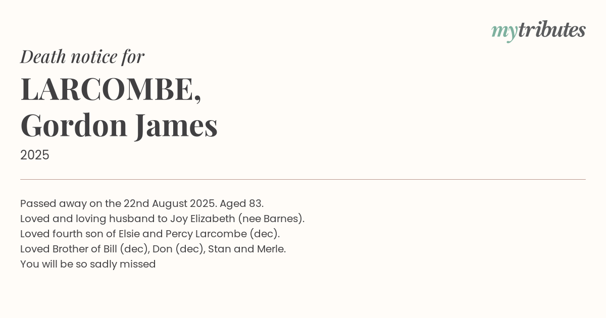 16°CPassed away on the 22nd August 2025. Aged 83.