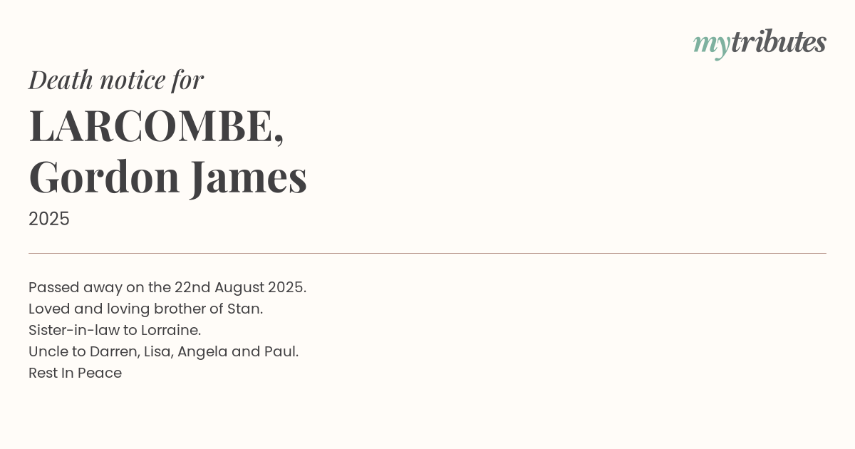 16°CPassed away on the 22nd August 2025.