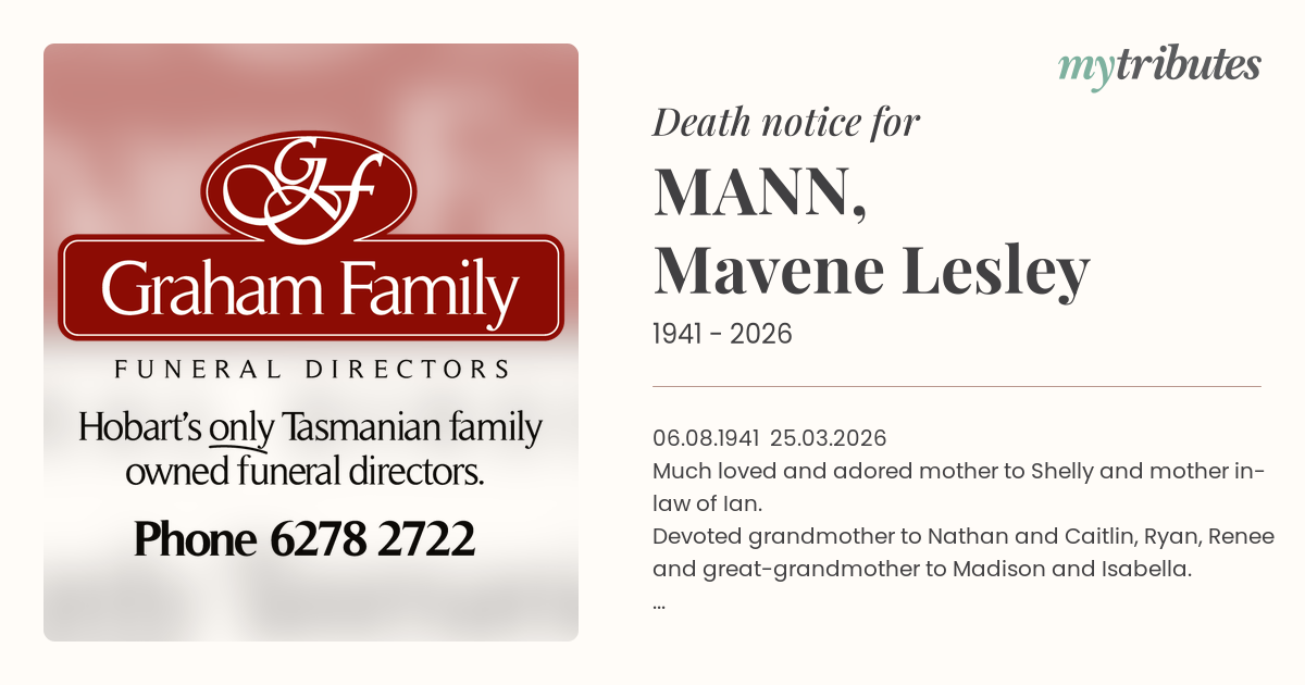 Funeral by : Graham Family Funerals Hobart