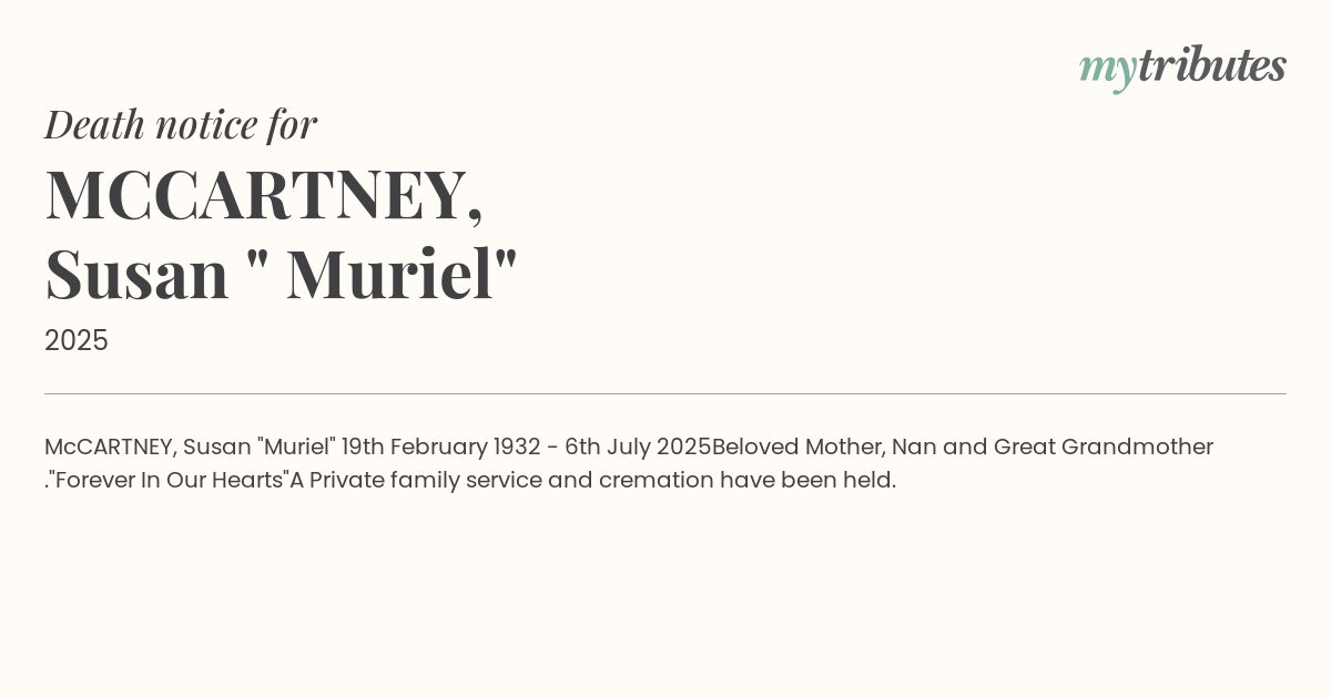 19th February 1932 - 6th July 2025
