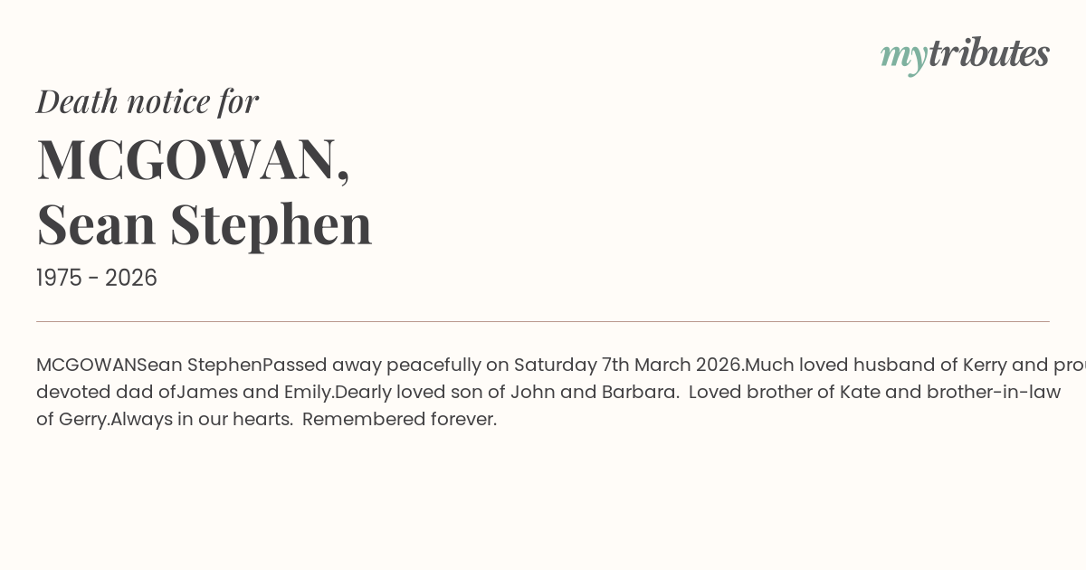 Passed away peacefully on Saturday 7th March 2026.