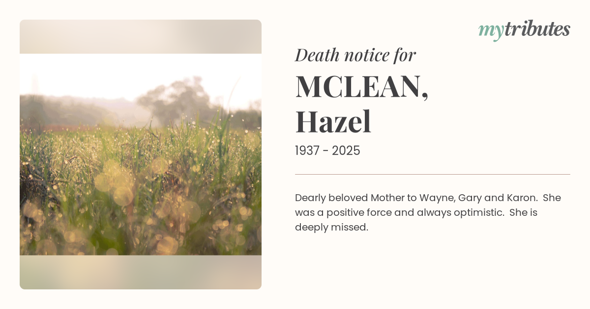 16°CDearly beloved Mother to Wayne, Gary and Karon. She was a positive force and always optimistic. She is deeply missed.