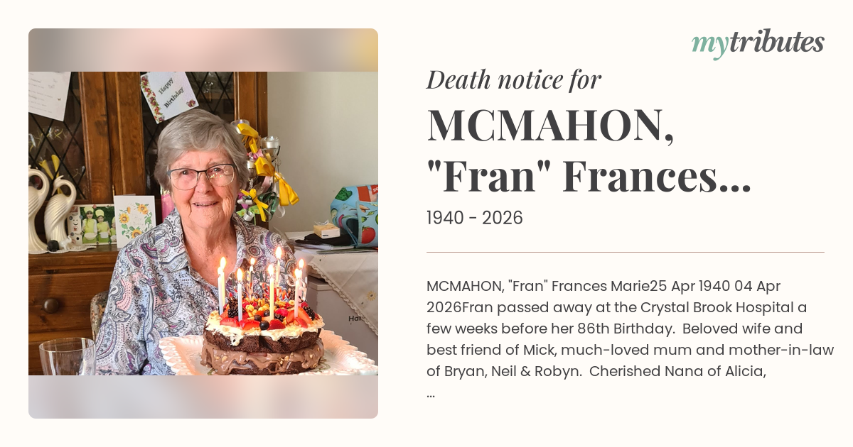 16°CMCMAHON, "Fran" Frances Marie