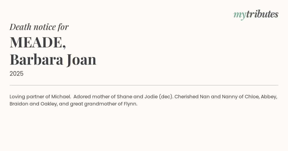 Cherished Nan and Nanny of Chloe, Abbey, Braidon and Oakley, and great grandmother of Flynn.