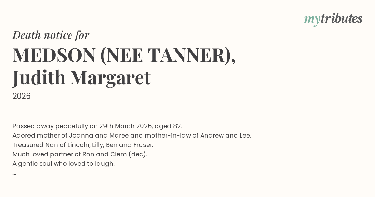 16°CPassed away peacefully on 29th March 2026, aged 82.