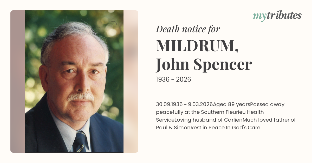 Passed away peacefully at the Southern Fleurieu Health Service