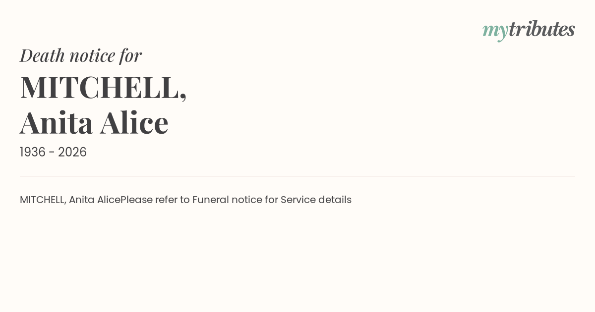Please refer to Funeral notice for Service details