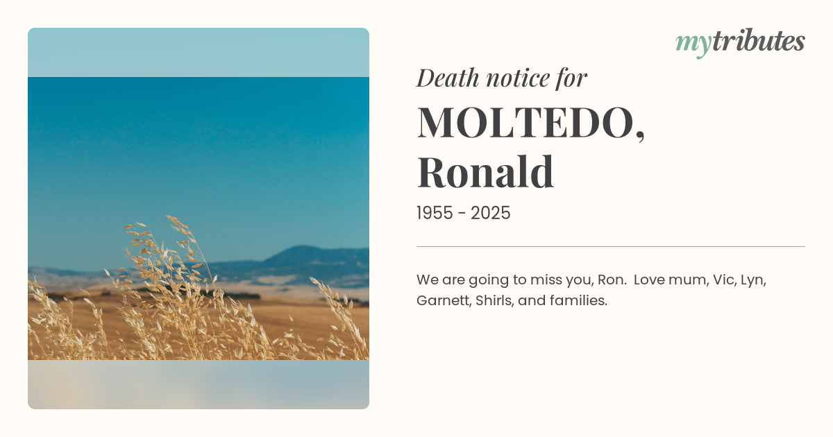 We are going to miss you, Ron. Love mum, Vic, Lyn, Garnett, Shirls, and families.