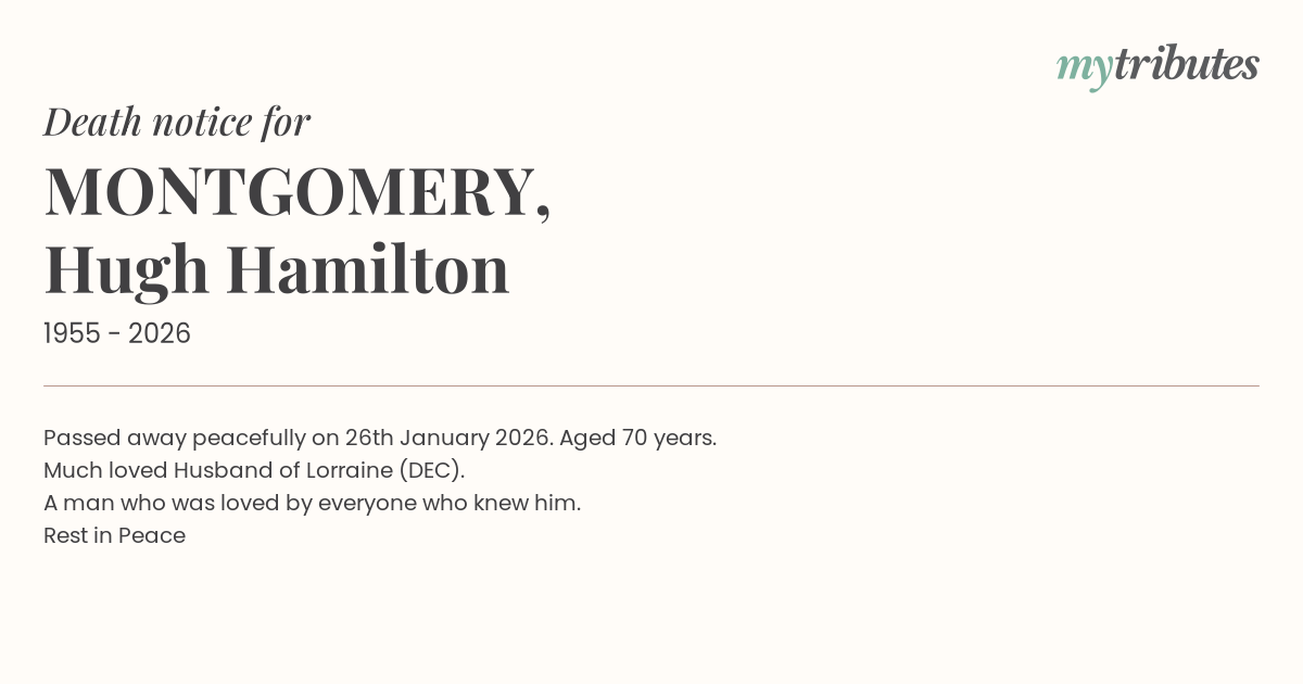 16°CPassed away peacefully on 26th January 2026. Aged 70 years.