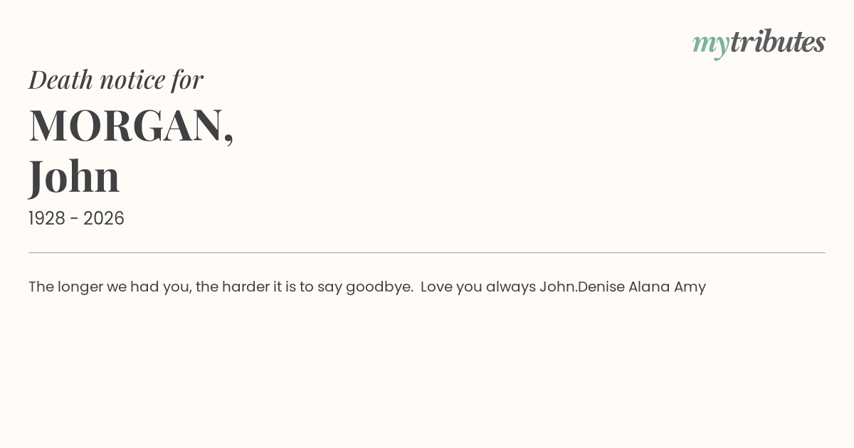 16°CThe longer we had you, the harder it is to say goodbye. Love you always John.