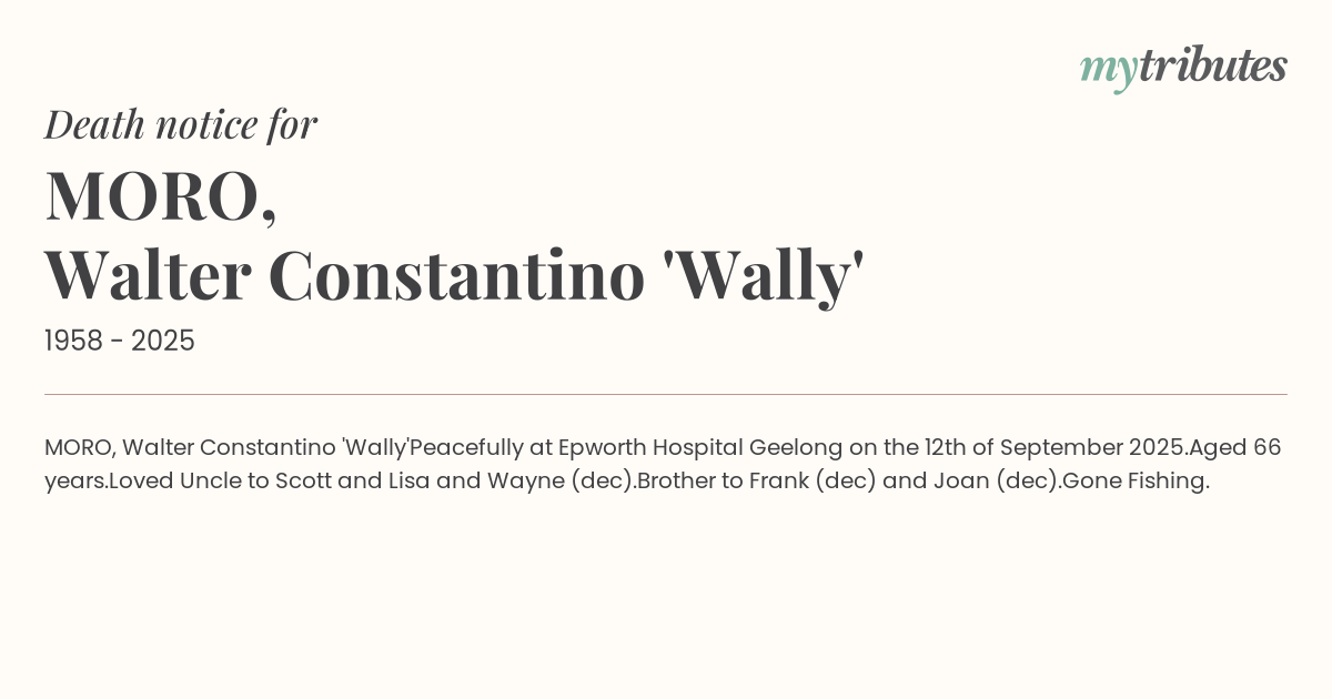 Peacefully at Epworth Hospital Geelong on the 12th of September 2025.
