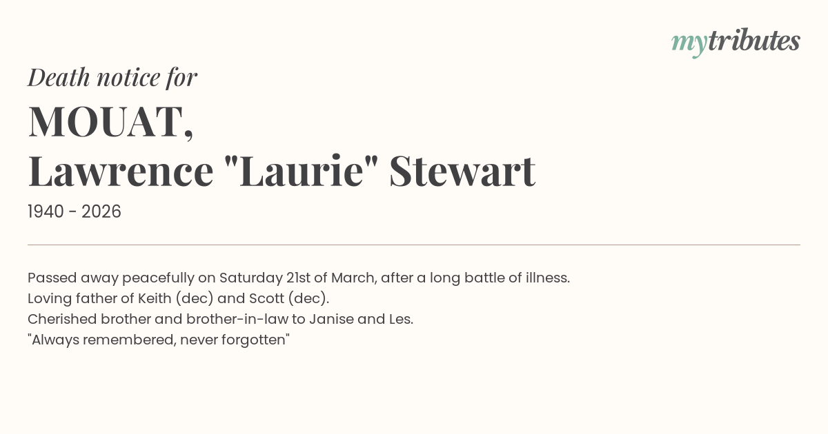 16°CPassed away peacefully on Saturday 21st of March, after a long battle of illness.