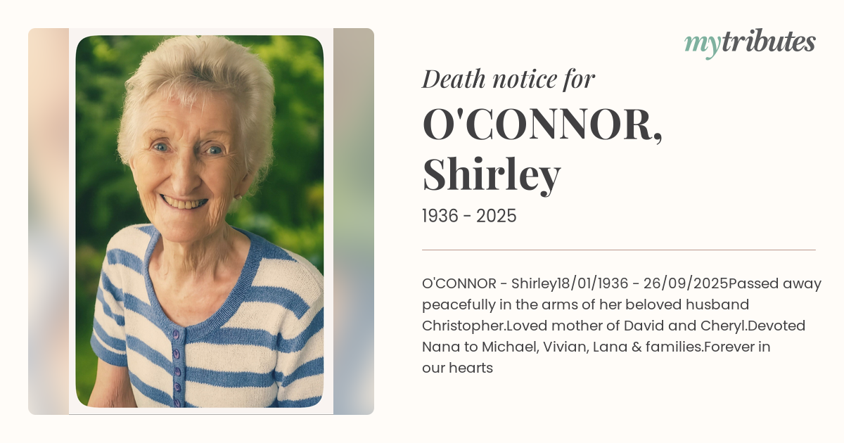 Passed away peacefully in the arms of her beloved husband Christopher.
