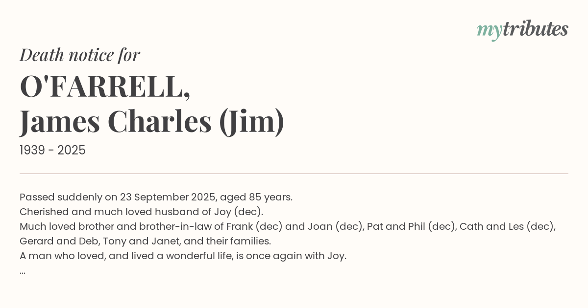 16°CPassed suddenly on 23 September 2025, aged 85 years.
