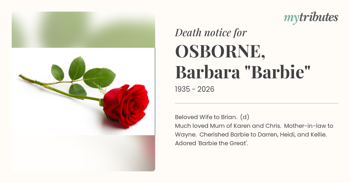 Cherished Barbie to Darren, Heidi, and Kellie.