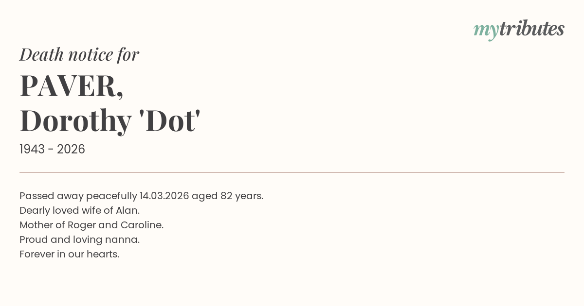 16°CPassed away peacefully 14.03.2026 aged 82 years.
