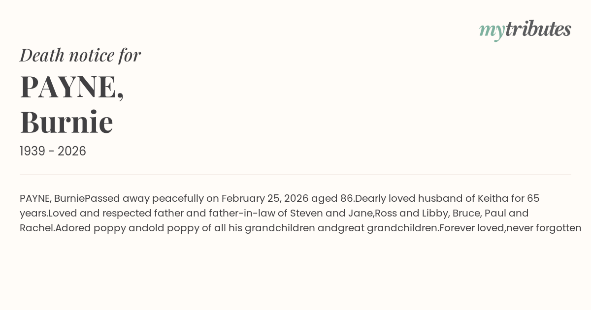 Passed away peacefully on February 25, 2026 aged 86.
