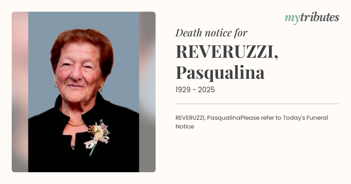 REVERUZZI, PasqualinaPlease refer to Today's Funeral Notice