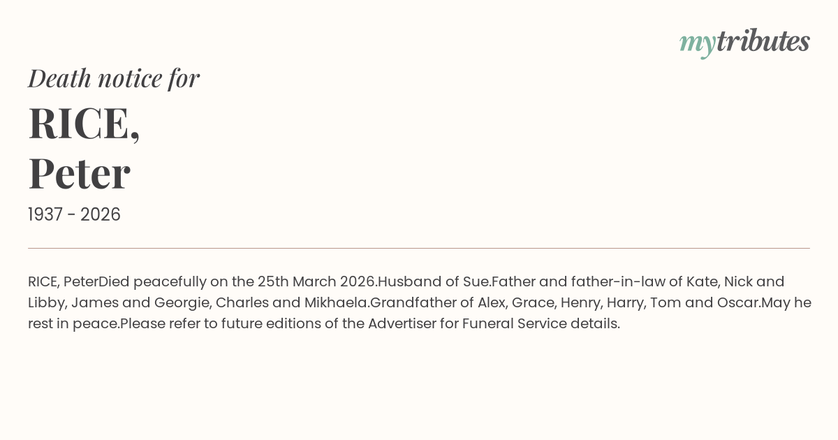 Died peacefully on the 25th March 2026.