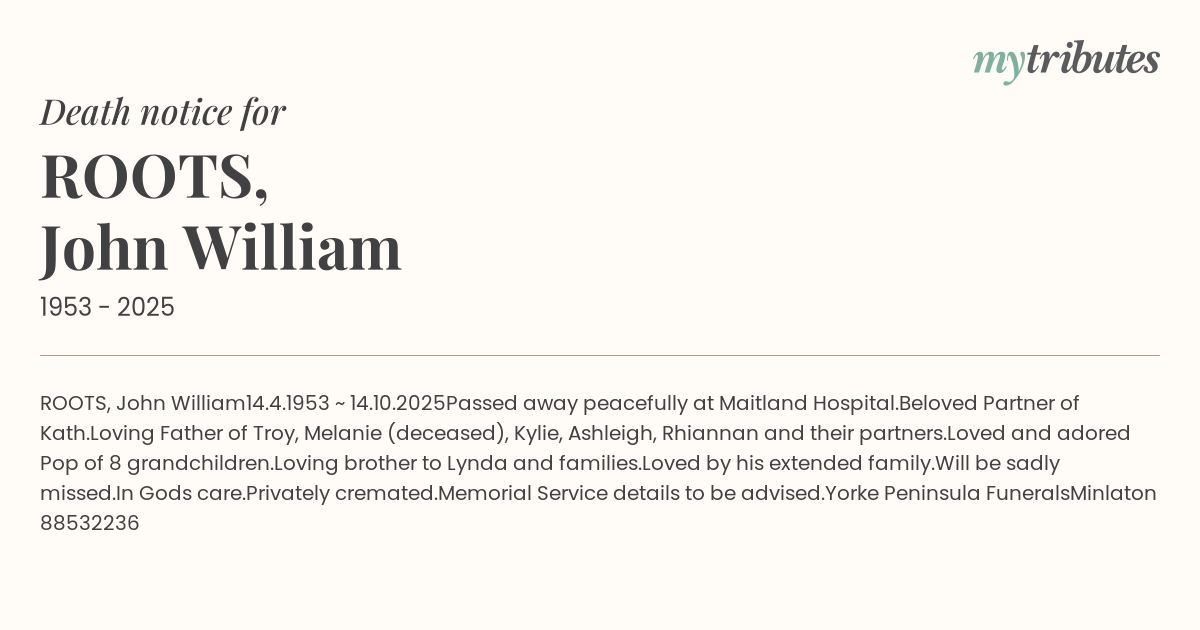 Passed away peacefully at Maitland Hospital.