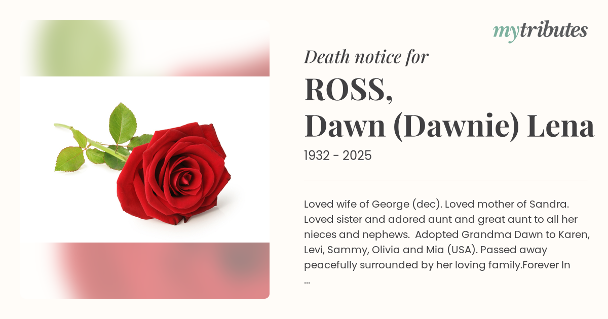 16°CLoved wife of George (dec). Loved mother of Sandra.