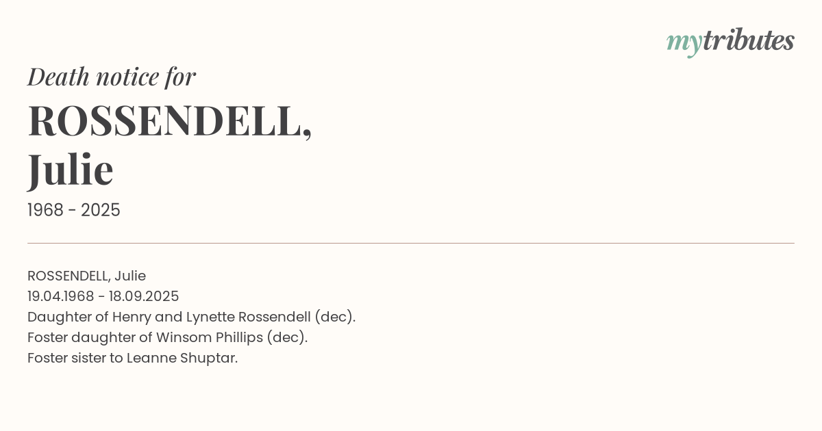 Daughter of Henry and Lynette Rossendell (dec).