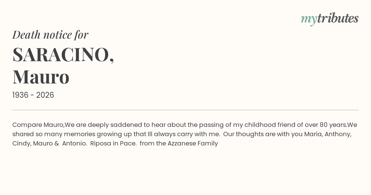 We shared so many memories growing up that I’ll always carry with me. Our thoughts are with you Maria, Anthony, Cindy, Mauro & Antonio. Riposa in Pace. from the Azzanese Family