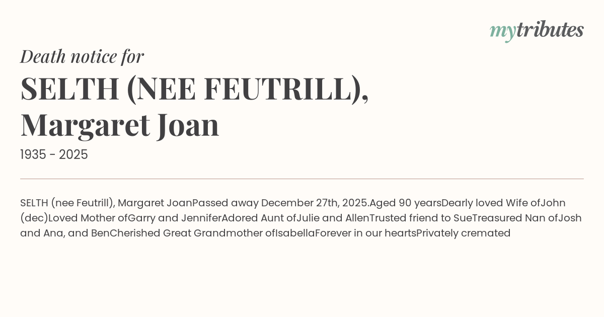 16°CSELTH (nee Feutrill), Margaret Joan