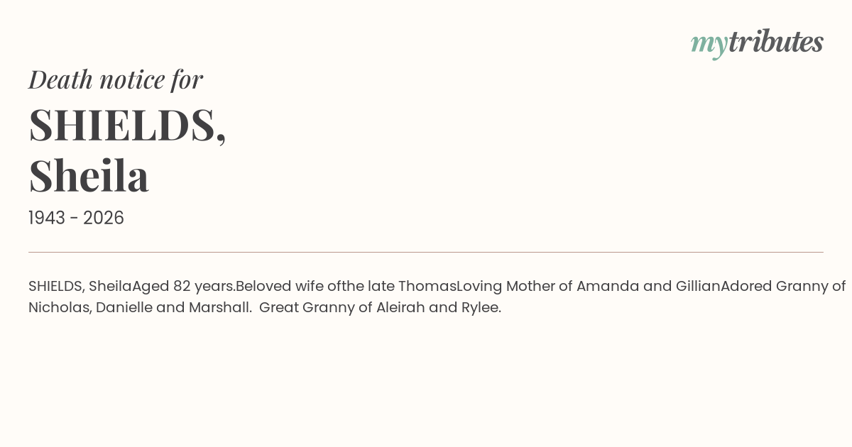 16°CSHIELDS, Sheila