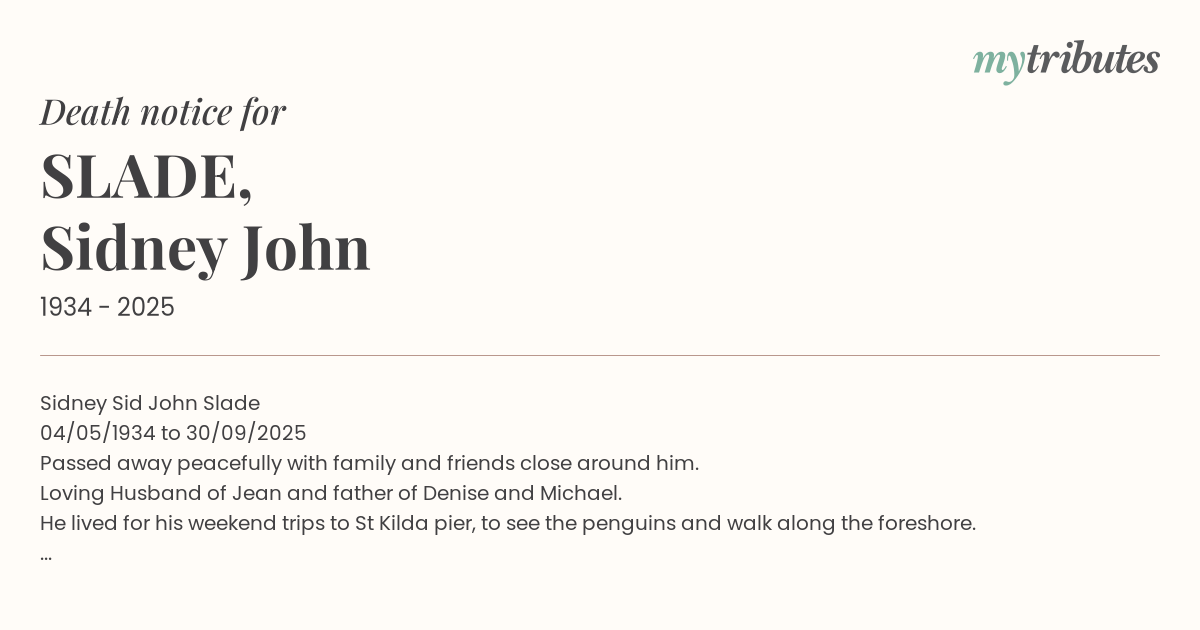 16°CSidney ‘Sid’ John Slade