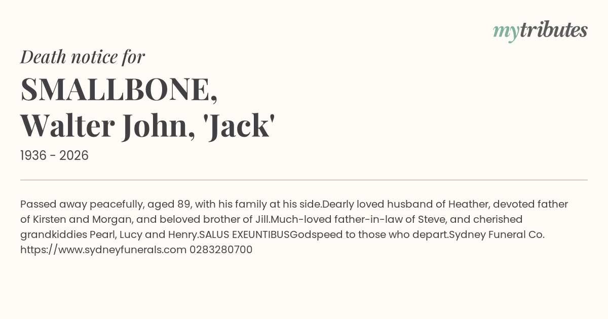 16°CPassed away peacefully, aged 89, with his family at his side.