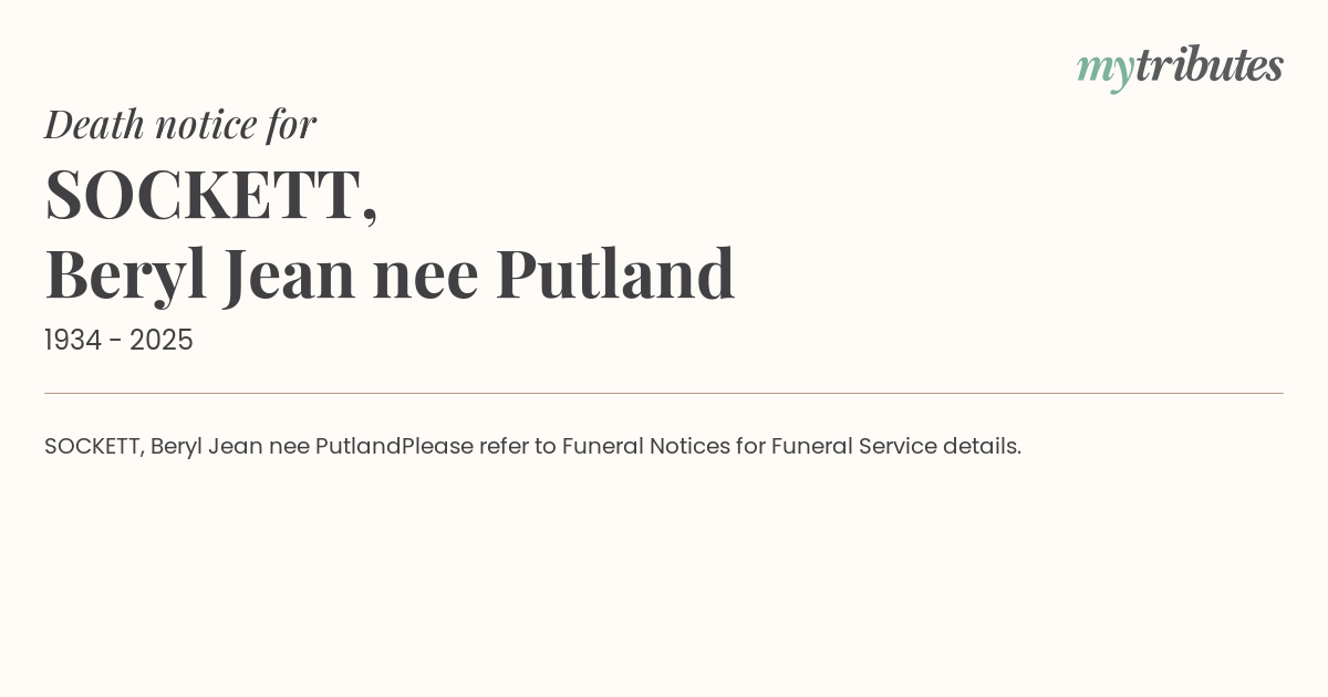 16°CSOCKETT, Beryl Jean