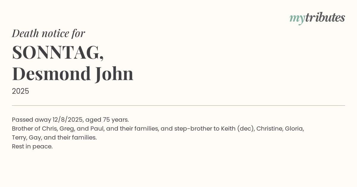 16°CPassed away 12/8/2025, aged 75 years.