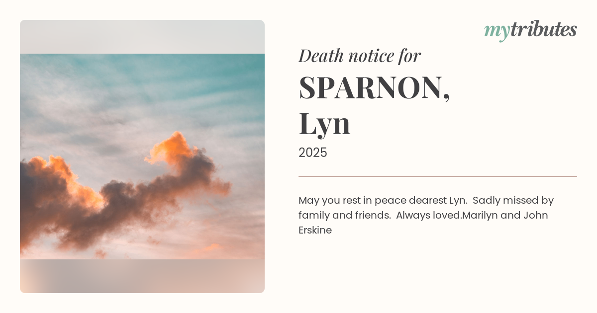 16°CMay you rest in peace dearest Lyn. Sadly missed by family and friends. Always loved.