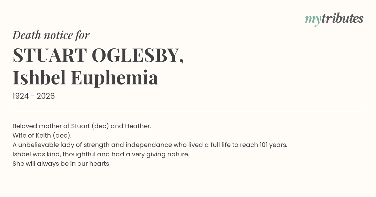 A unbelievable lady of strength and independance who lived a full life to reach 101 years.