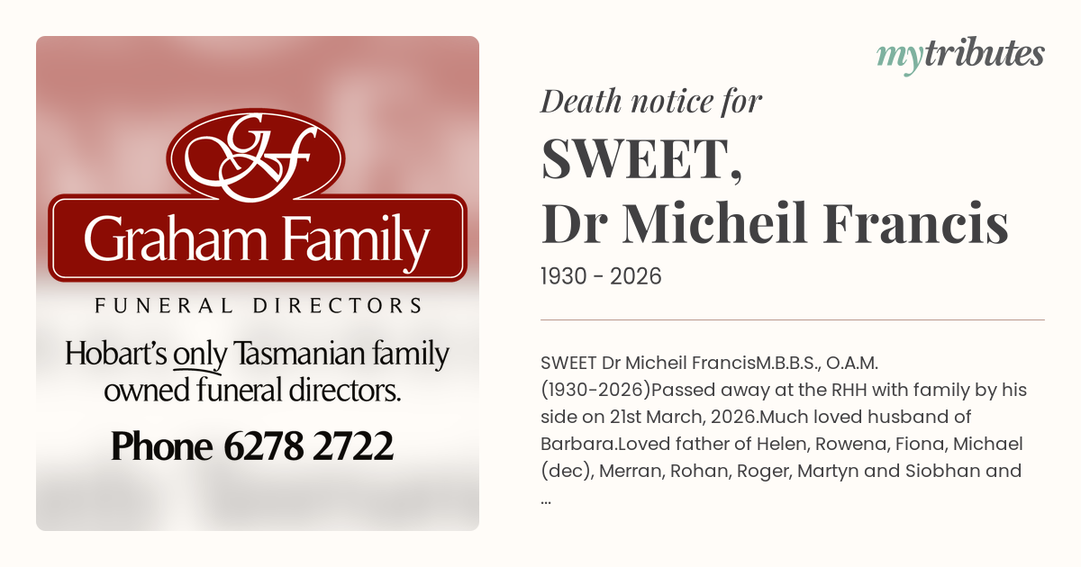 Funeral by : Graham Family Funerals Hobart
