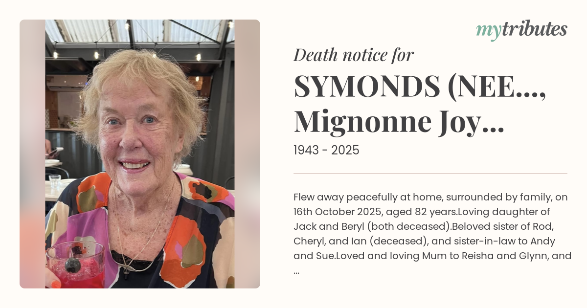16°C‘Flew’ away peacefully at home, surrounded by family, on 16th October 2025, aged 82 years.