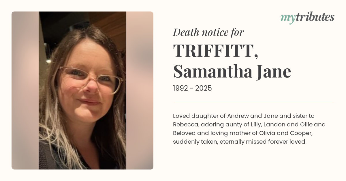 16°CLoved daughter of Andrew and Jane and sister to Rebecca, adoring aunty of Lilly, Landon and Ollie and Beloved and loving mother of Olivia and Cooper, suddenly taken, eternally missed forever loved.