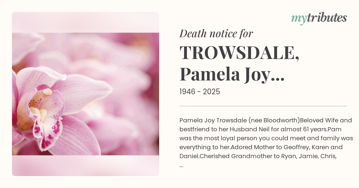 16°CPamela Joy Trowsdale (nee Bloodworth)