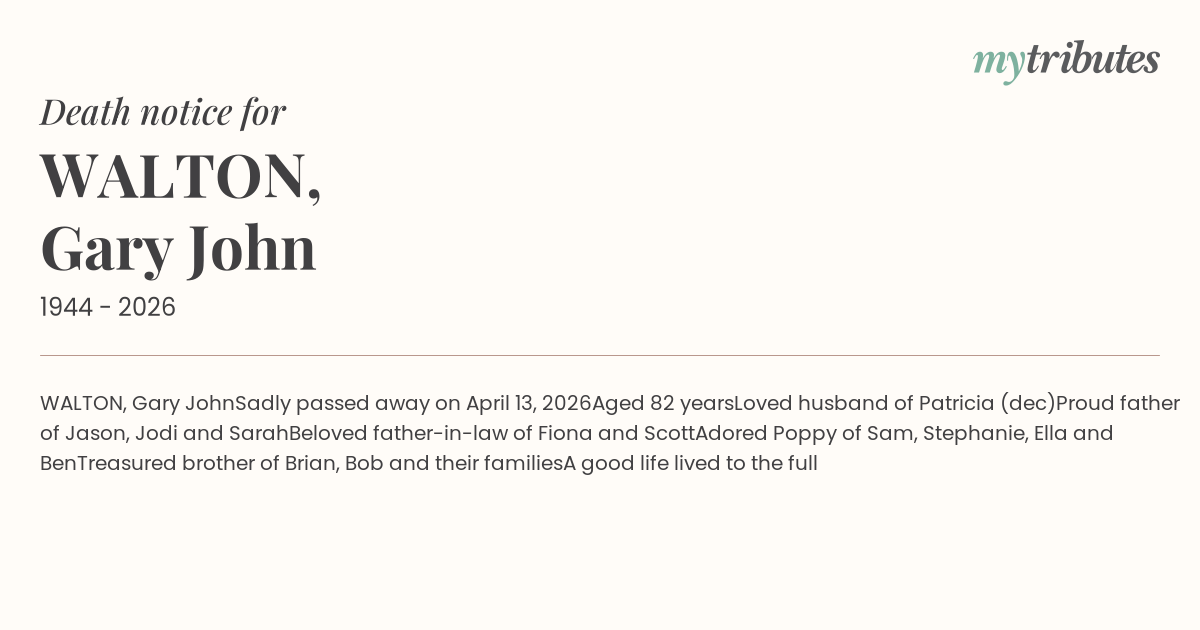 Sadly passed away on April 13, 2026