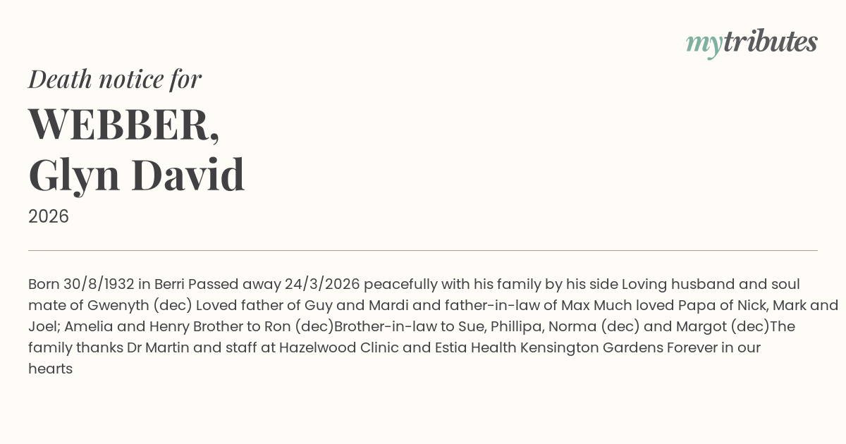 Brother-in-law to Sue, Phillipa, Norma (dec) and Margot (dec)