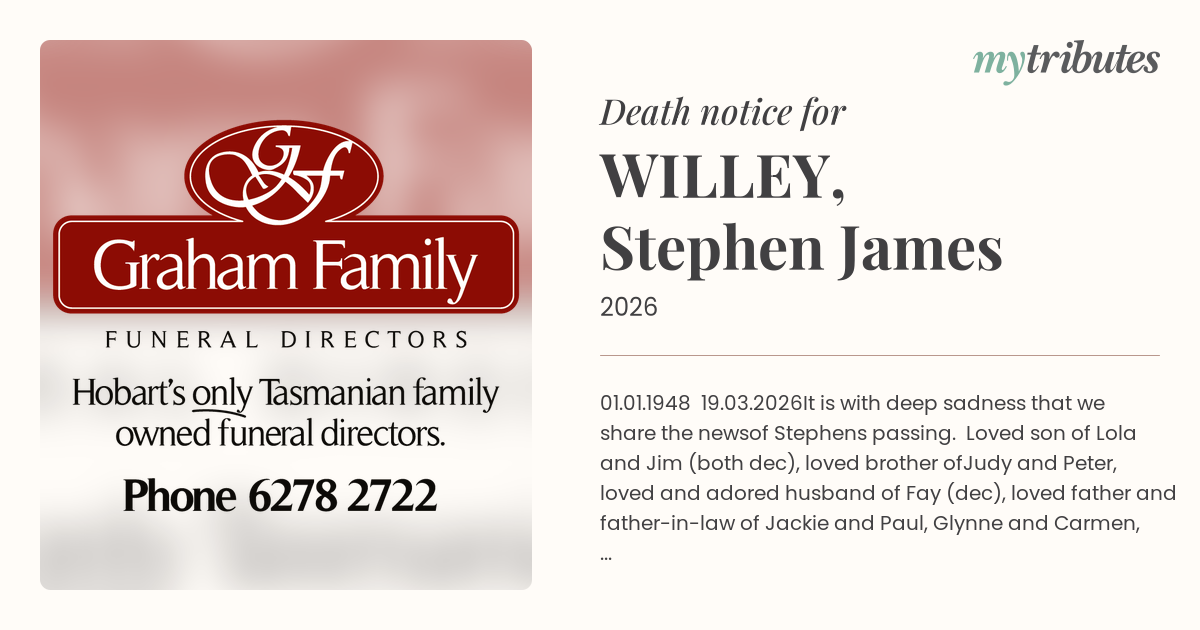 Funeral by : Graham Family Funerals Hobart