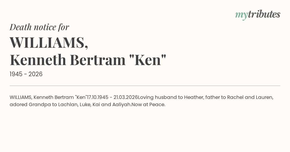 Loving husband to Heather, father to Rachel and Lauren, adored Grandpa to Lachlan, Luke, Kai and Aaliyah.