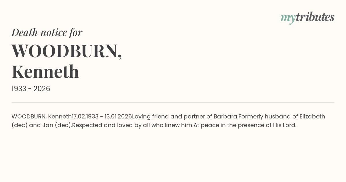 16°CWOODBURN, Kenneth